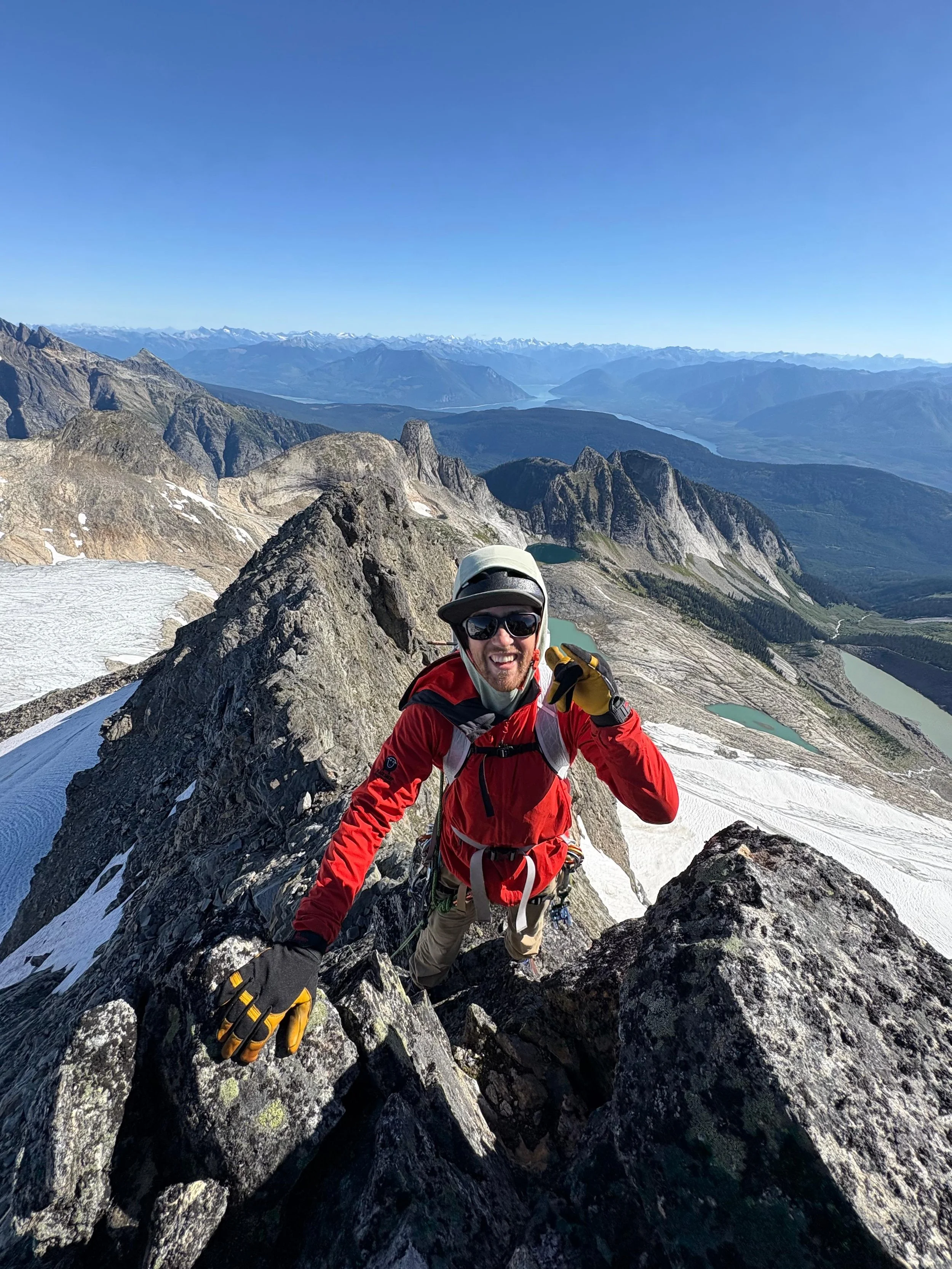 While he loves tackling ambitious objectives and exploring the mountains, Brian is happiest connecting with people and sharing laughs. Drawing on his diverse training background - from English Literature, to clown college, to the ACMG - Brian is known for bringing levity, humour, and personal connection to each day in the mountains. His guiding career has also led him to extensive experience in the film industry, with a range of credits as a safety consultant, stunt rigger, and medic both nationally and internationally.